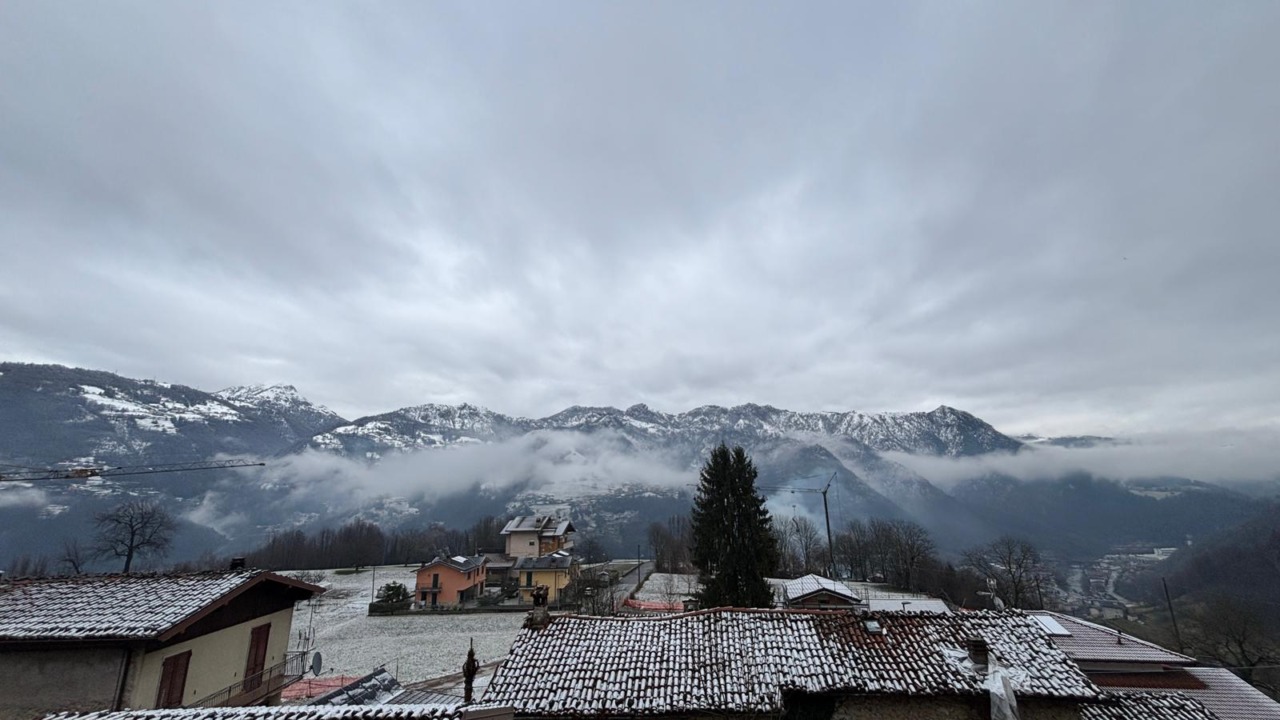 Ne è un esempio questa foto, scattata nelle scorse ore dalla finestra di un’abitazione in località Frasnito, che si trova a 515 metri d’altitudine e fa parte del Comune di San Pellegrino Terme. I tetti delle case e i prati circostanti sono coperti da una leggera spruzzata di neve fresca.