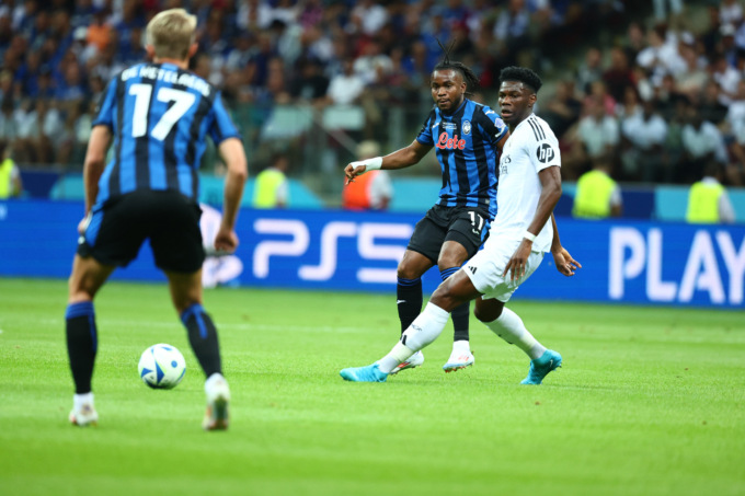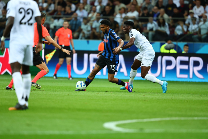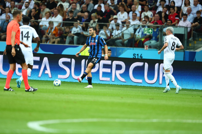 Dopo lo spettacolare ingresso in campo delle due squadre con le rispettive coppe vinte – Europa League per la Dea e Champions League per gli spagnoli -, la gara inizia con l’Atalanta attenta a non concedere nessun tipo di spazio agli avversari: nei primissimi minuti, sia Kolasinac che Hien sono molto aggressivi su Mbappé e Vinicius, che capiscono subito come i metodi degli orobici siano quelli toste delle serate più belle. La prima azione interessante, però, è proprio dell’Atalanta: al 6’ palla filtrante di De Ketelaere per Zappacosta, che in piena area perde il tempo del cross e non conquista nemmeno il calcio d’angolo.