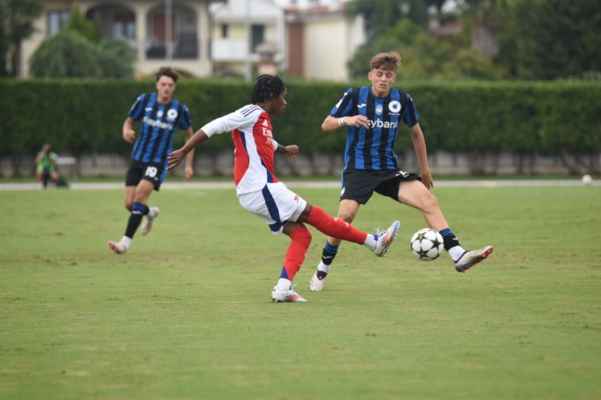 La Dea ha sbloccato il match già al 16’ grazie a un preciso colpo di testa di Comi, che ha sfruttato alla perfezione un calcio d’angolo battuto da Bonanomi. Alla mezz’ora è arrivato il raddoppio con Fiogbe: dopo un recupero palla intelligente nella trequarti avversaria, il numero 46 ha calciato da fuori area, trovando la deviazione di un difensore dell’Arsenal e portando il risultato sul 2-0.