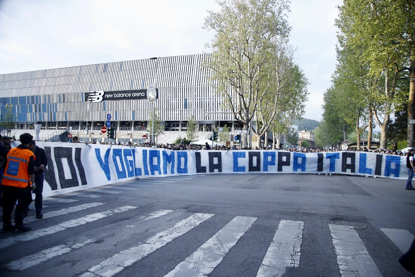 I sostenitori atalantini hanno accolto l’arrivo del pulman della Dea con una torciata colorata e diverse bandiere a sventolare. Presente anche lo striscione “Noi vogliamo la Coppa Italia”!