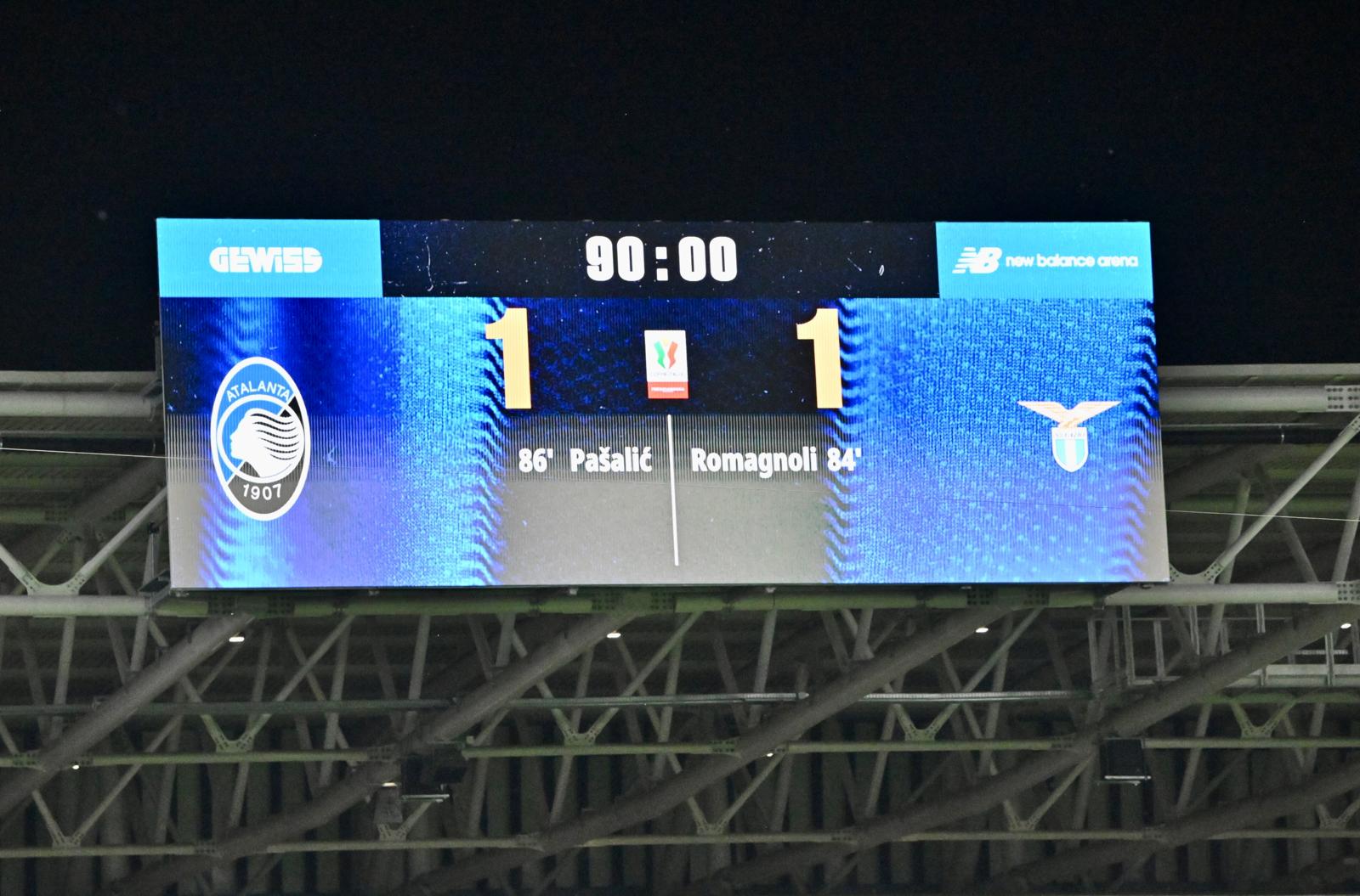 Il punteggio è fermo sull’1-1 al termine dei tempi regolamentari, si andrà ai supplementari alla New Balance Arena. Dea padrona del gioco per lunghi tratti, con tante occasioni create ma senza riuscire a sbloccarla. Nella ripresa gara più tesa e spezzettata, con l’episodio del gol annullato che accende il nervosismo. Nel finale succede di tutto: Lazio avanti all’84’ con Romagnoli sugli sviluppi di corner, risposta immediata dell’Atalanta con Pasalic due minuti dopo. Nel recupero chance clamorosa per la Dea, ma il palo nega il gol vittoria. Tutto in equilibrio: serviranno altri 30′.