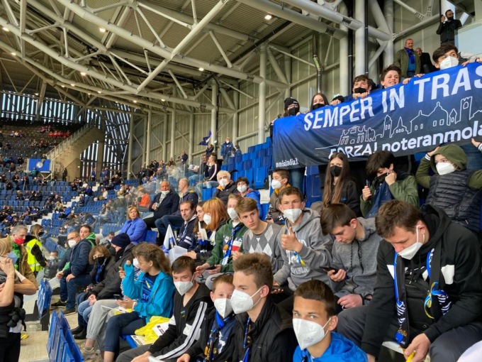 Nei giorni scorsi avevamo raccontato come un’idea nata in quel di Lipsia (merito del tifoso nerazzurro Giulio Panza) e la collaborazione di tanti amici abbia permesso di organizzare un’uscita allo stadio di Bergamo tutta da ricordare. La giornata è iniziata con i ragazzini ucraini, accompagnati anche dal sindaco di Rota Giovanni Locatelli, che sono passati dalla sede Ats in Borgo Palazzo per i tamponi di controllo, poi l’arrivo allo stadio nel tardo pomeriggio e l’incontro con Roksana, moglie del calciatore Malinovskyi, all’esterno della Curva Pisani, all’angolo con la Tribuna Rinascimento.