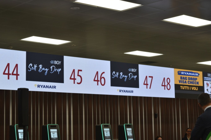 Ai banchi “self”, si aggiungono 8 tradizionali dotati di personale. Il che porta il numero totale a 64 postazioni disponibili. Sopra ognuna, due monitor a led ad alta risoluzione consentono una migliore visibilità del quadro voli in tempo reale, con indicazioni dell’orario e del gate di partenza, e un risparmio del 30 per cento dei consumi elettrici. L’intera area è dotata di sensori stereoscopici per monitorare i tempi d’attesa e le operazioni di accettazione.