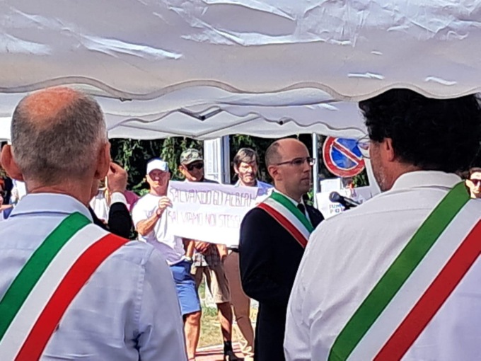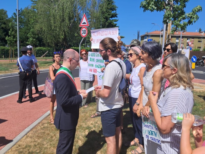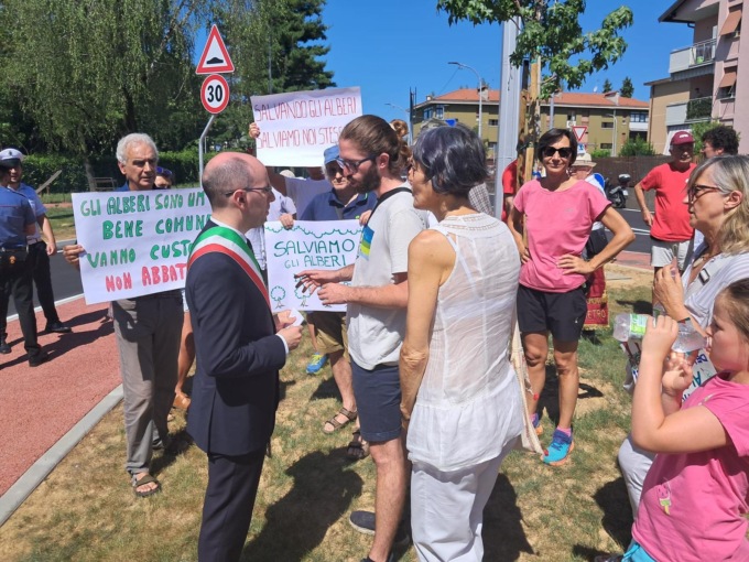 Mentre il sindaco Matteo Macoli procedeva con il rituale del taglio del nastro, un gruppo di residenti ed esponenti della lista “Tu per Ponte al futuro” ha infatti dato vita a un flash mob per contestare l’abbattimento di una sessantina di tigli in via Papa Giovanni XXIII e una quarantina di aceri.