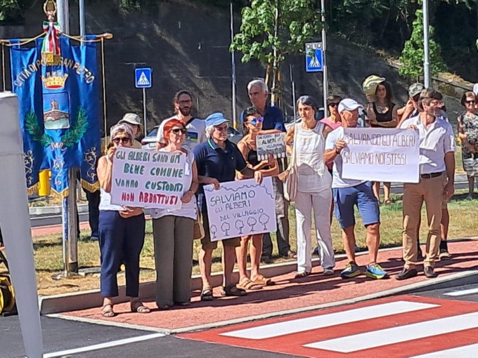 Con cartelli alzati recanti scritte come «No al massacro degli alberi», «I tigli sono nostri nonni» e «Marciapiedi sì, ma senza abbattere i tigli», una ventina di manifestanti hanno fatto da contraltare al discorso del primo cittadino, che elencava i vantaggi dell’opera davanti alle autorità, apparentemente impassibile. Nel frattempo, alcuni oppositori distribuivano volantini per spiegare le ragioni del loro dissenso verso il progetto di riqualificazione pedonale nella strada adiacente.