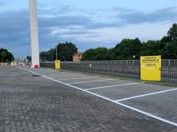 La realizzazione dell’area di sosta è stata possibile grazie alla concessione in comodato d’uso gratuito e precario di circa 5.500 metri quadrati del piazzale da parte di Effebi Immobiliare Spa, della famiglia Bonini, società proprietaria dell’area e dell’edificio situato tra via San Bernardino e la Circonvallazione Pompiniano.