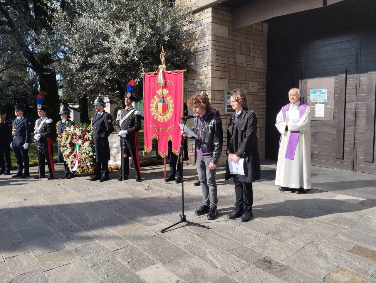 Due studenti del liceo Mascheroni di Bergamo (Bianca Centurelli e Matteo Giulia) hanno letto una toccante preghiera di Ernesto Olivero. Mentre a monsignor Davide Pelucchi, vicario generale della Diocesi di Bergamo, la riflessione e la benedizione attraverso una commovente lettera del tempo inviata ai giornali da due giovani che non potevano vedere i genitori malati. «Siamo stati spettatori del grande miracolo dell’Amore – ha detto Pelucchi – attraverso la vicinanza fra le persone, quella che cerchiamo in tutte le fasi della nostra vita».