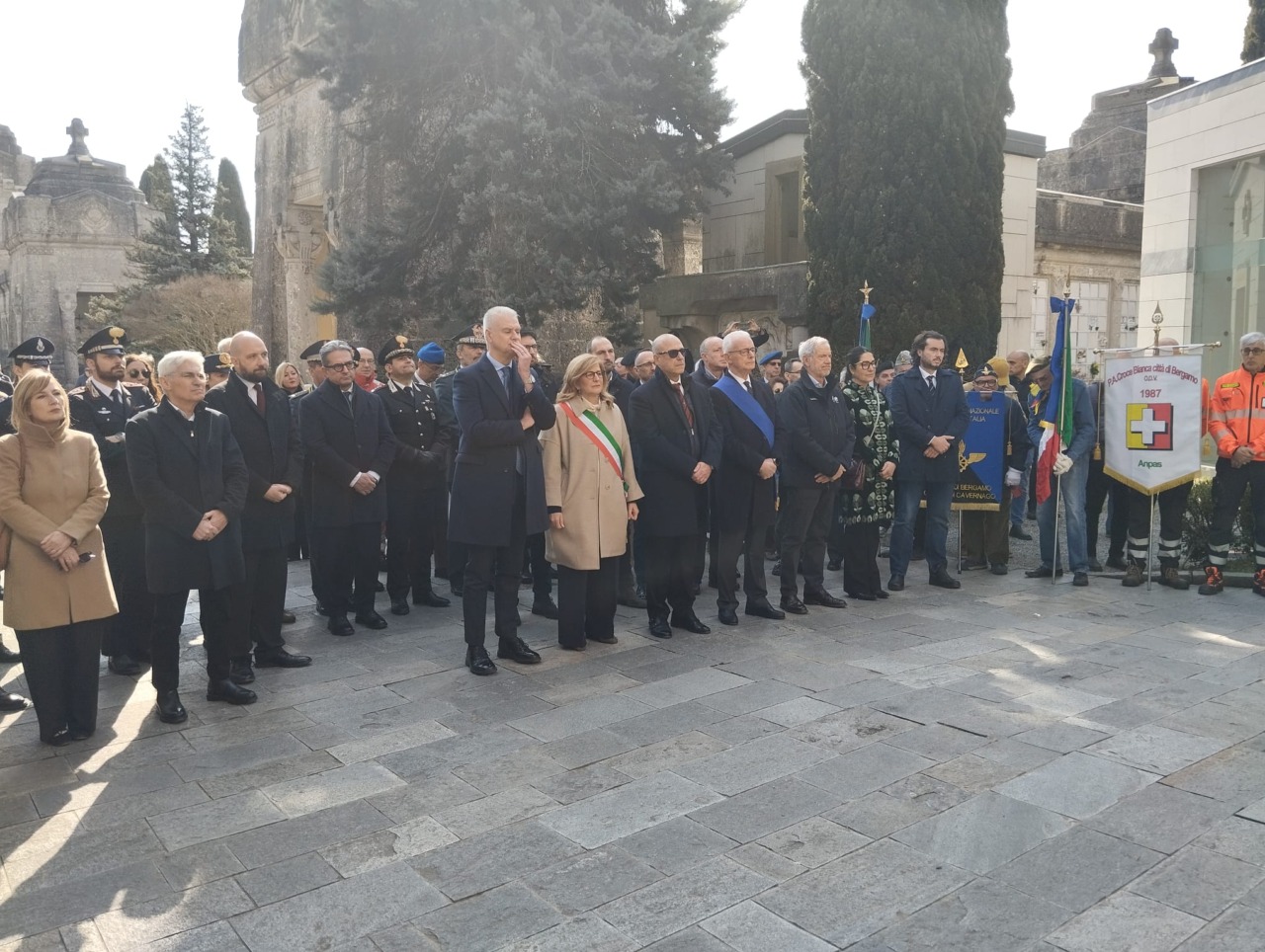 La prima parte delle cerimonie si è tenuta al cimitero monumentale di Bergamo. Presenti le autorità civili, militari e religiose per mantenere viva la memoria di una tragedia che ha fatto seimila morti.