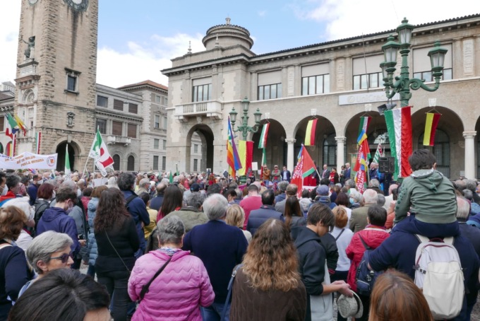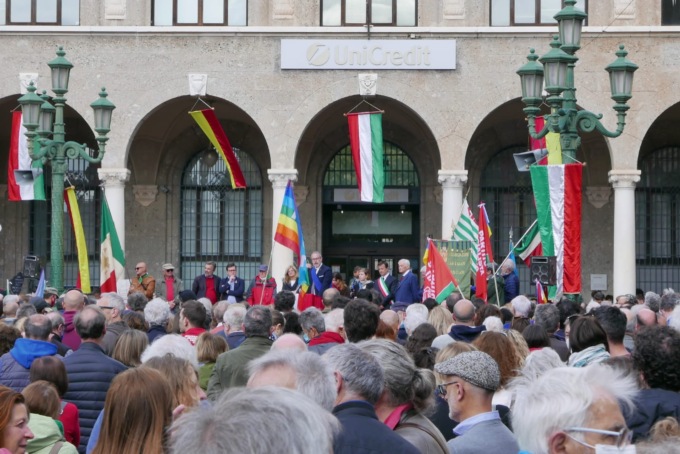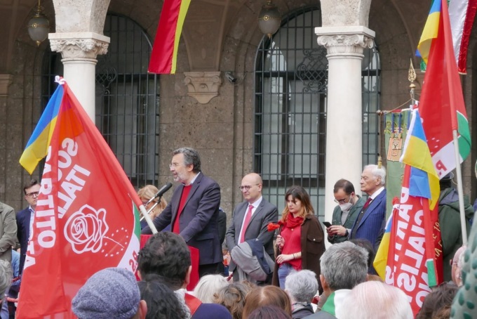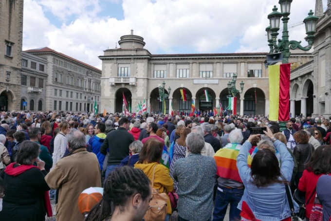 Dopo una breve cerimonia di commemorazione al parco delle Rimembranze, alla Rocca, oltre 3.500 persone si sono radunate in piazzale Marconi, di fronte alla stazione ferroviaria, e hanno sfilato fino a piazza Vittorio Veneto, dove dal palco sono intervenute le autorità cittadine ma anche il giornalista Marco Damilano. Interventi durante i quali non soltanto sono stati ricordati i valori dell’antifascismo e della libertà, ma è stata anche ribadita l’importanza della difesa dei diritti democratici e della giustizia. Riferimenti, espliciti, alla guerra in Ucraina.