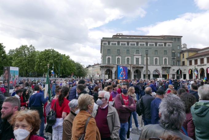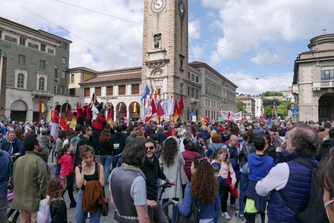 Il centro di Bergamo è tornato ad animarsi in occasione dei festeggiamenti del 77esimo anniversario della Liberazione d’Italia dal governo fascista e dall’occupazione nazista. E lo ha fatto con una partecipazione straordinaria di cittadini, dopo i due anni di stop forzato a causa della pandemia che avevano impedito l’organizzazione di manifestazioni pubbliche.
