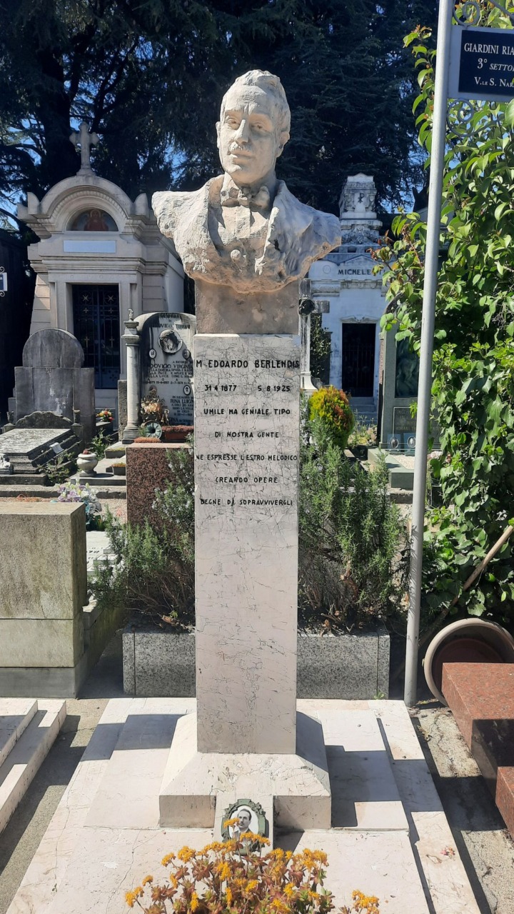 La tomba situata nei Giardini Rialzati del Cimitero Monumentale appartiene a Edoardo Berlendis (1877-1925), compositore e figura di rilievo della scuola musicale bergamasca, docente dell’Istituto “Gaetano Donizetti” e autore dell’opera “Liacle”, rappresentata nel 1917 e considerata uno degli eventi lirici di spicco della storia del Teatro cittadino. Accanto a lui riposa la moglie Clelia Terzi Mairone da Ponte (1879-1961), che contribuì a custodirne e valorizzarne la memoria artistica.