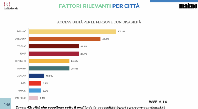 In questa graduatoria viene dato spazio ai risultati di una survey web nazionale su un campione di 1.200 cittadini di Bari, Bergamo, Bologna, Genova, Roma, Milano, Napoli, Palermo, Torino e Verona, con un focus sulle percezioni sociali e una particolare attenzione alla componente femminile.