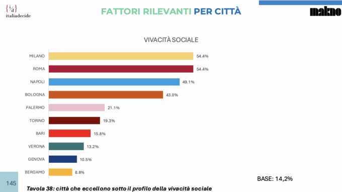 Si tratta quindi di un’indagine diversa da altre classifiche più convenzionali basate su indicatori oggettivi. Questo studio è orientato infatti a inquadrare la reputazione delle città italiane sulla base della percezione sociale e sulla qualità della vita.
