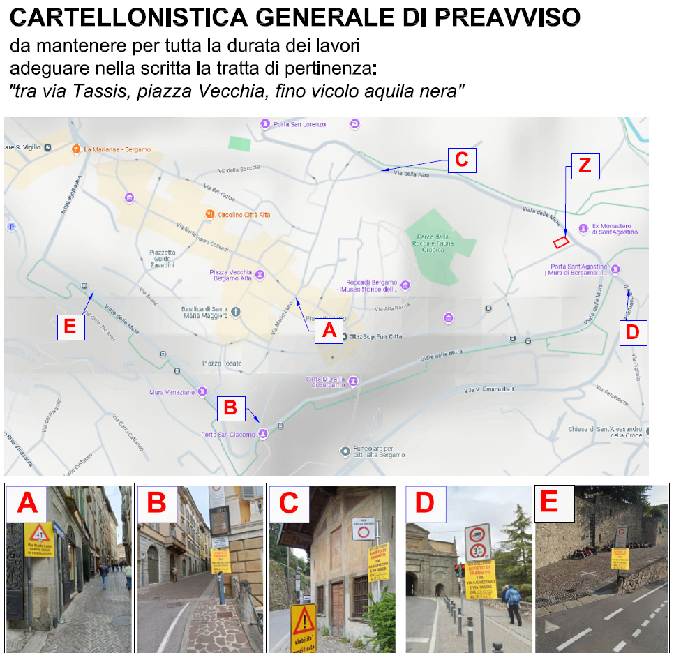 - in via Colleoni, nel tratto compreso tra via Salvecchio e vicolo Aquila Nera, divieto di sosta permanente con rimozione forzata, eccetto mezzi di cantiere;