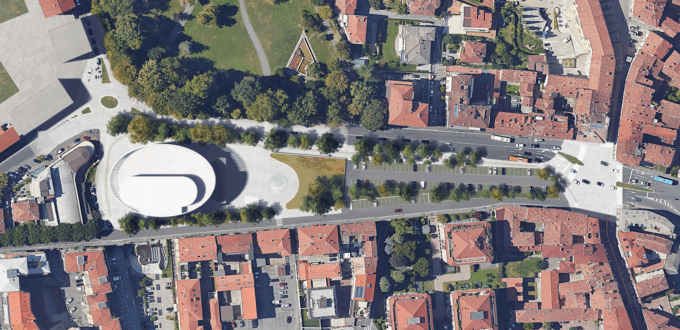 Il progetto della nuova piazza della Gamec e dei parcheggi. A destra si poossono vedere i posti auto lì dove prima sorgeva il dehors di FudBox