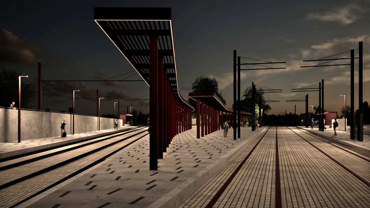 L’intervento architettonico prevede la pavimentazione e un arredo urbano progettato per le nuove pensiline, il pergolato e un’area verde.