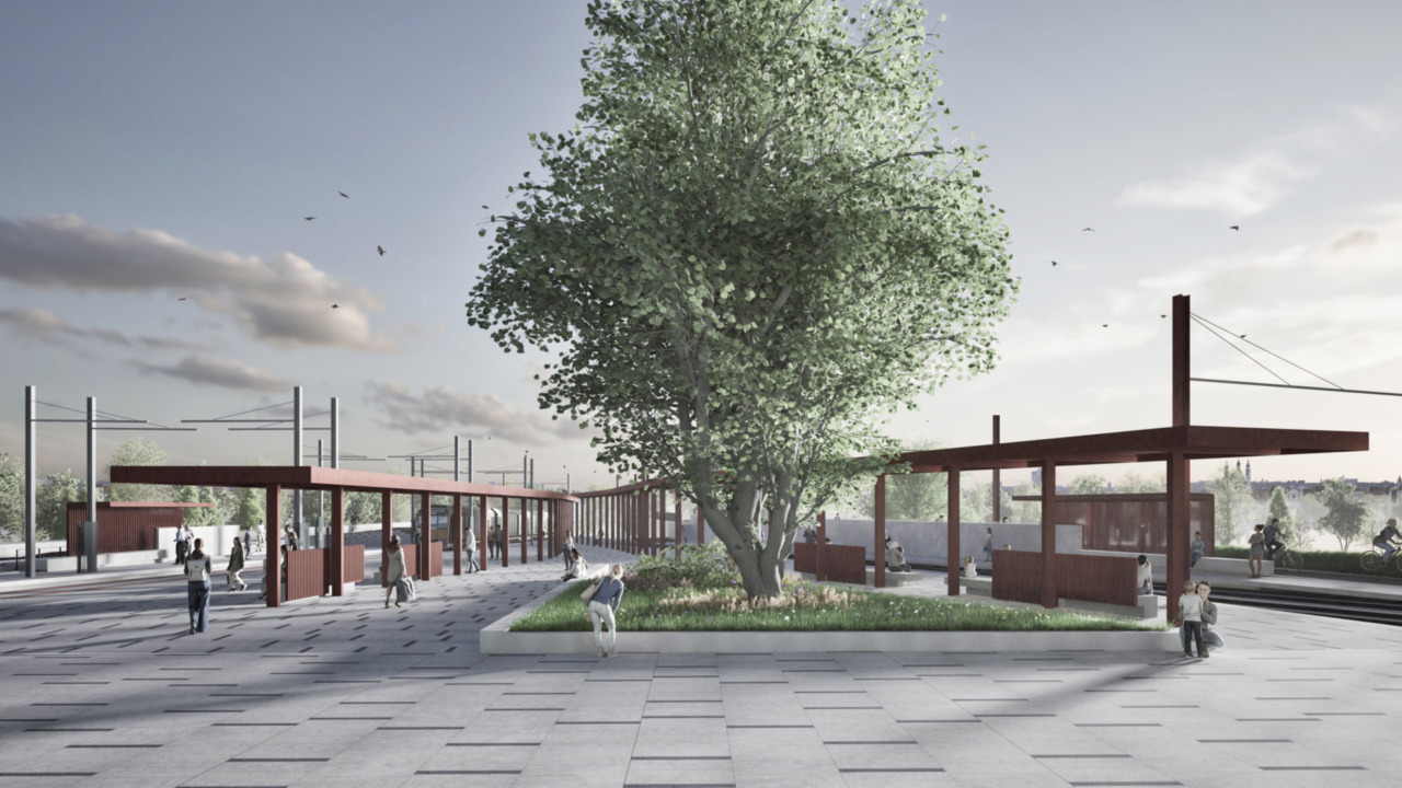 Linea T2 - rendering fermata e piazza "Bronzetti Arena"