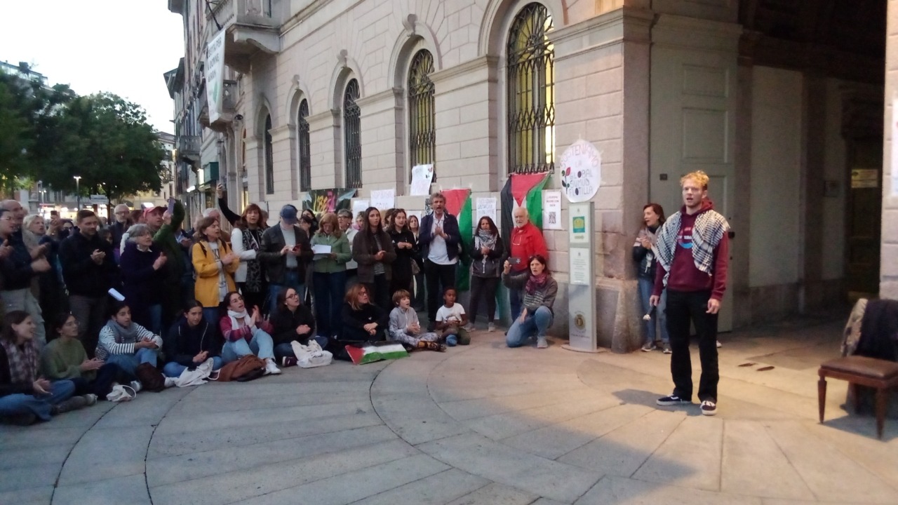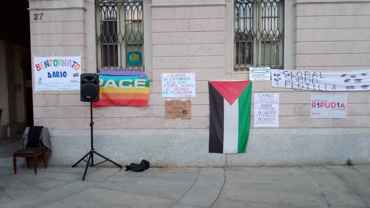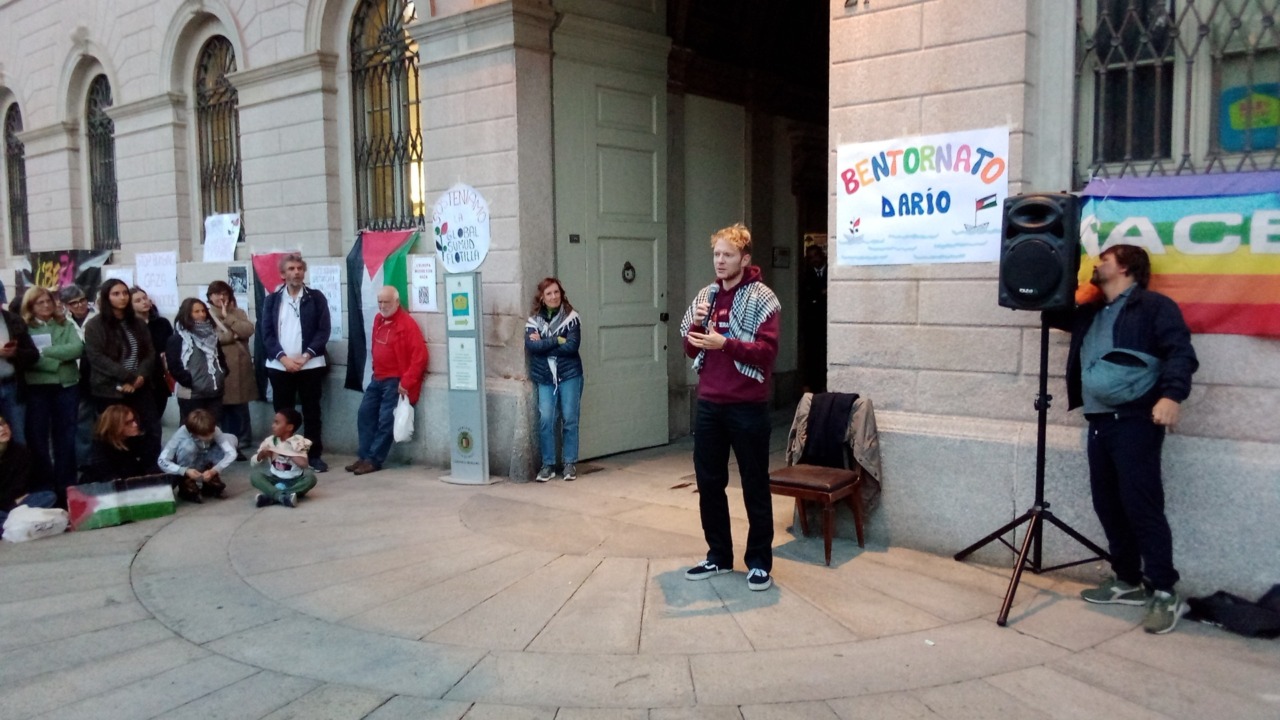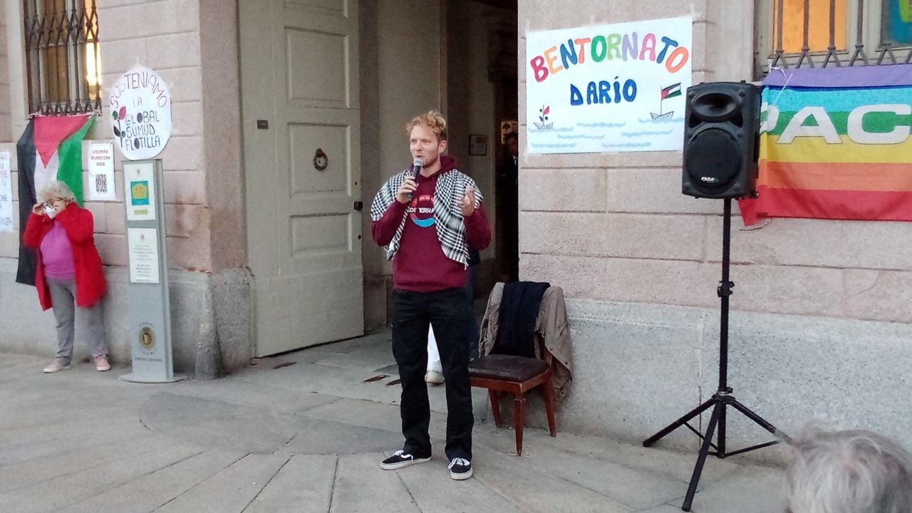 Il venticinquenne bergamasco – figlio dell’assessore comunale Marzia Marchesi e di Paolo Crippa – originario di Monterosso, è stato uno dei protagonisti della Flotilla verso Gaza. Rientrato ieri sera in Italia dopo un’espulsione coatta per via giudiziaria da parte di Israele, si è preso una giornata di riposo e quest’oggi nel tardo pomeriggio ha voluto incontrare militanti, compagni e amici dinanzi al municipio.