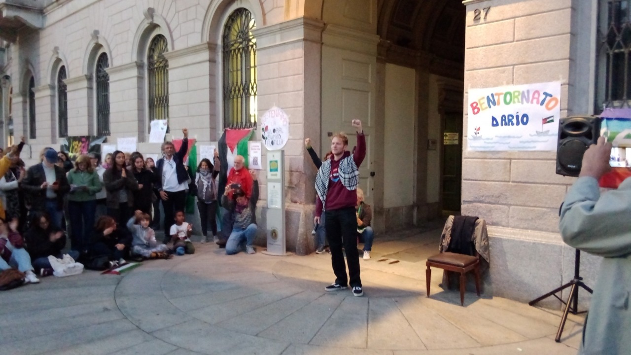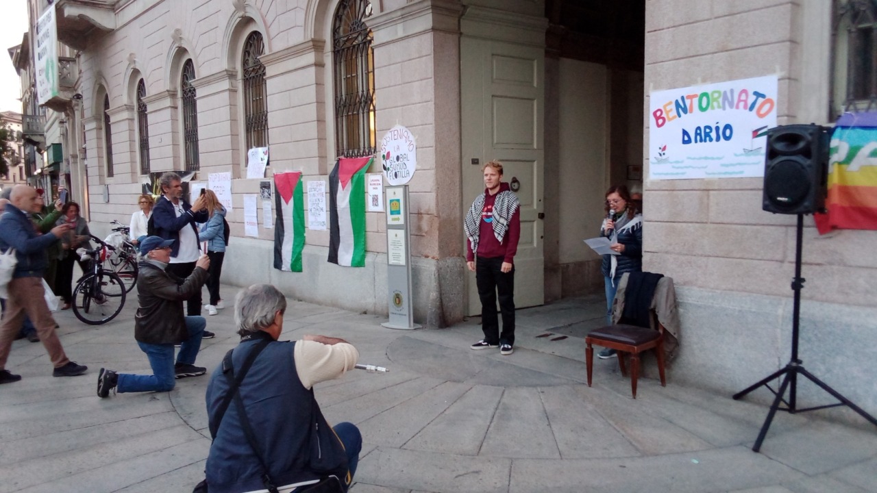 Subito dopo, l’intervento di Elena Carnevali. «Dario, dopo giorni di trepidazione, siamo orgogliosi e contenti di averti qui. Vogliamo mostrarti l’affetto e la stima della città per il tuo coraggio. Continueremo a lavorare per il cessate il fuoco, per la pace, per un popolo massacrato e per il rispetto dei diritti umani e del diritto internazionale ripetutamente violati. Allo stesso modo però condanniamo l’attentato del 7 ottobre» ha aggiunto la sindaca mentre alcuni attivisti intonavano “Free Free Palestine” andando sopra la sua voce.