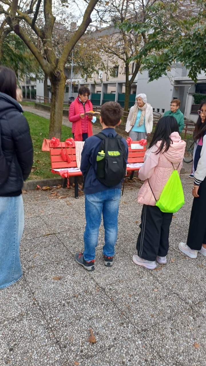 «Ormai sono questi i libri che dobbiamo leggere ai nostri bambini. Ma lo si deve fare per essere lungimiranti, e nel nostro piccolo volevamo fare qualcosa. Con la giornata di oggi, la speranza è che ogni volta che passeranno davanti alla panchina rossa si ricordino di quello che hanno sentito», dice Beatrice.