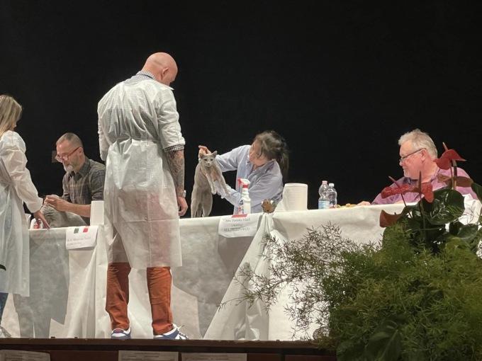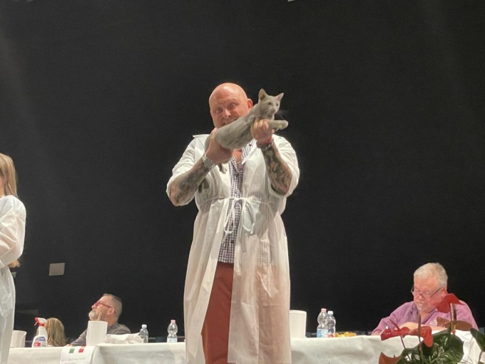 Gatti di diverse razze hanno sfilato in passerella e sono stati giudicati, sotto la guida dell’Associazione felina italiana, da giudici internazionali Wcf (World cats federation) nel best in show. Tre i numerosi felini provenienti da ogni parte del mondo la scelta è caduta su di lei, Ginette, sinuosa nel suo manto argenteo e ipnotica con i suoi occhi blu.