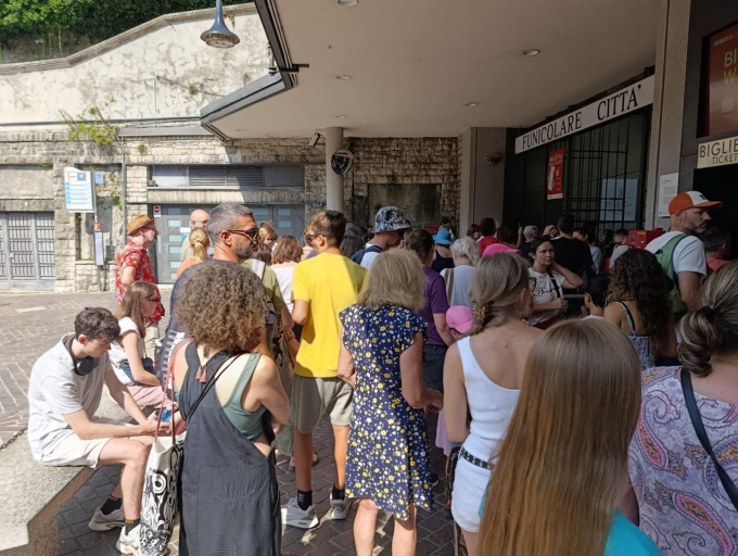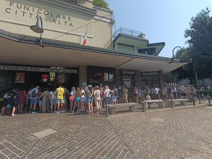 Trentasette minuti di attesa per prendere una funicolare, il cui tragitto ne dura tre e mezzo. A raccontare quanto le è accaduto nei giorni scorsi è una guida turistica, in visita in Città Alta con un gruppo di spagnoli: la donna ci segnala lunghe code di accesso, emettitrici fuori uso e confusione generale.