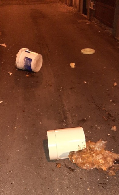 Ai piccioni si aggiungono anche gli schiamazzi di persone che danno feste disturbando il vicinato. I rifiuti risultanti dalle nottate brave sono poi visibili al mattino nella via, con i bidoni esposti dai residenti per la raccolta differenziata distrutti e con tanto di vetri di abitazioni al piano terra rotti.