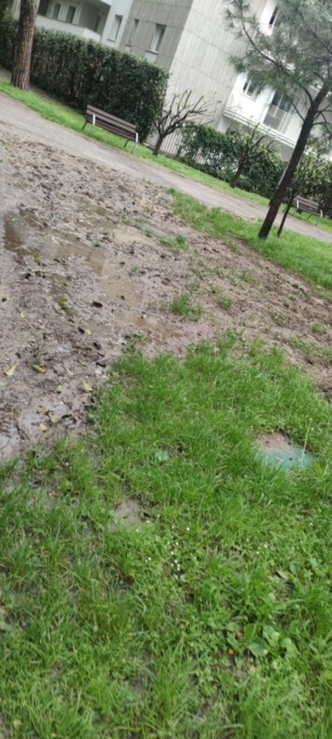 Dopo le piogge di ieri, mercoledì 10 aprile, il parco Locatelli si è riempito di pozzanghere e fango. L’area verde ha riaperto al pubblico il 29 marzo dopo un lungo periodo di manutenzione e riqualifica che ha lasciato perplessi alcuni cittadini.