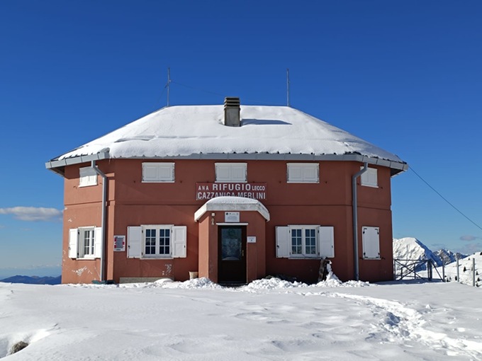 Posto su uno sperone roccioso a oltre 1.900 metri di quota, in un punto che consente di spaziare con la vista sulle Prealpi e gran parte dell’arco alpino occidentale, il Cazzaniga-Merlini è storico punto di riferimento e frequentata meta non solo per le penne nere lecchesi – che a luglio celebrano qui il loro annuale raduno sezionale – ma anche per i numerosissimi escursionisti che frequentano la zona tanto d’estate che d’inverno.