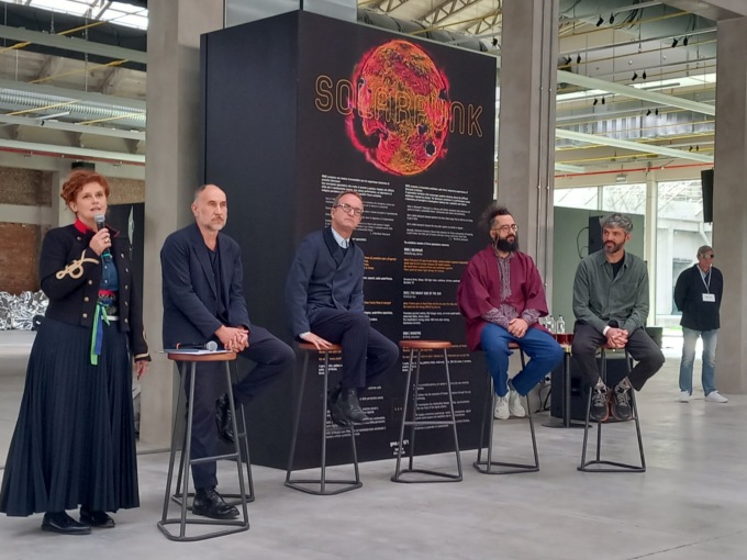 In questo contesto, grande protagonista (come del resto si può intuire dal nome stesso dello spazio) è l’arte. Sin dall’ingresso, dove ad accogliere i visitatori sono sette silos in acciaio corten, alti dieci metri e pesanti 39 tonnellate, disegnati da Mario Nanni e realizzati e illuminati da Viabizzuno. Si tratta infatti delle strutture che, in occasione di Expo 2015, hanno abitato il centro di Milano, nel quartiere di Brera, e che a Gres Art diventano il simbolo di rigenerazioni e di restituzioni. All’interno dello spazio, invece, la mostra con cui parte la programmazione è SolarPunk, del collettivo artistico None Collective.