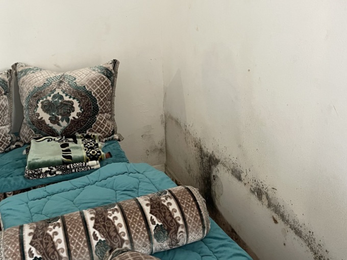 La muffa ricopre i muri ed è visibile soprattutto vicino ai letti, inoltre né la cucina né il bagno sono areati e, dopo la risposta negativa del Comune alla richiesta di intervenire per ristrutturare l’appartamento e a quella di attuare un cambio alloggi, Hakimi si impegna a ripulire ogni due settimane a forza di candeggina. Ma anche questo non è abbastanza e, soprattutto, non è salutare.