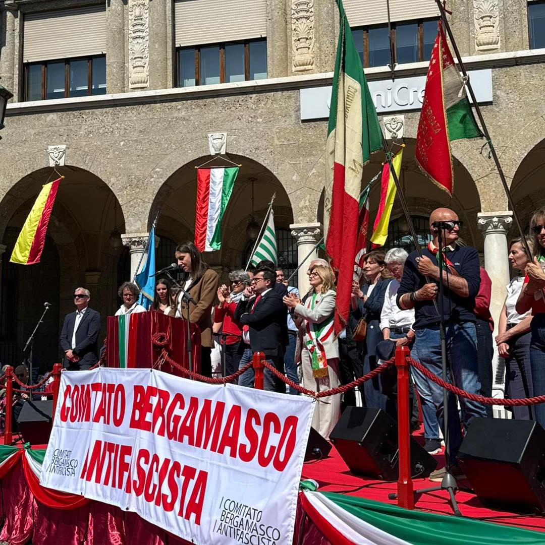 Spazio è stato dato poi a una studente del Liceo Secco Suardo per il progetto “Testimoni di Resistenza”, all’esponente di Equipaggio di Terra e Rete No Kings, Rory Stafasani, e anche a Mauro Magistrati, presidente del Comitato bergamasco antifascista. Il coro «Pane e guerra» ha poi intonato in chiusura i canti della Resistenza.