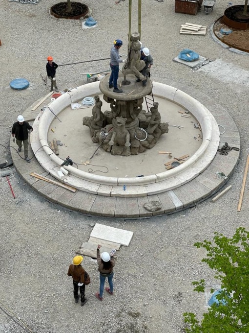 La fontana del Tritone ha fatto ritorno a casa: è stata rimessa al centro di piazza Dante