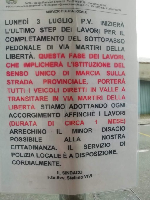 Non solo Pontesecco: gli automobilisti diretti in Valle Brembana avranno, per il prossimo mese o due, un’altra bella gatta da pelare. Sono partiti ieri, lunedì 3 luglio, i lavori per l’ultimo lotto di completamento del sottopasso pedonale che collegherà via Marconi con via Martiri della Libertà, in territorio comunale di Sorisole, dal costo complessivo di 570 mila euro.