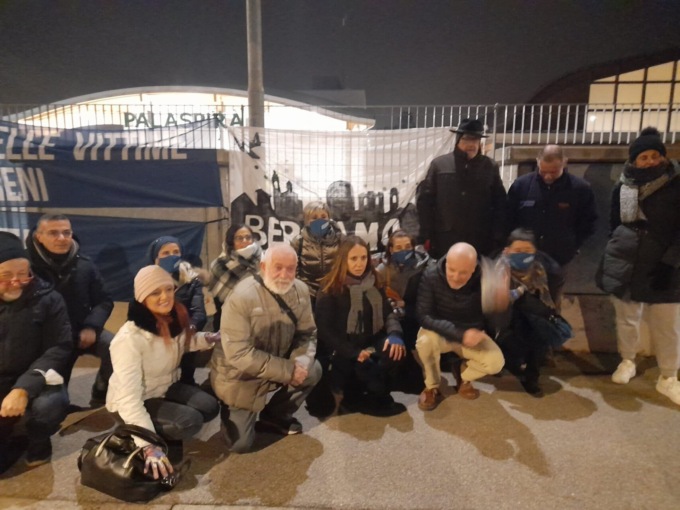 Così avevano spiegato i familiari della vittime del Covid dell’Associazione #Sereniesemoreuniti la loro presenza al presidio organizzato da alcuni gruppi e cittadini in occasione della visita del presidente Fontana nella Bassa bergamasca, al PalàSpirà, evento organizzato da Ats Bergamo.