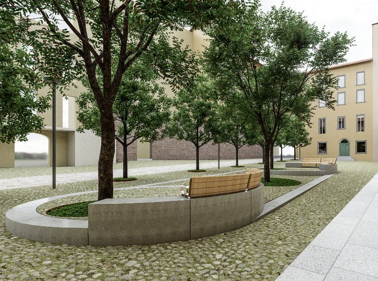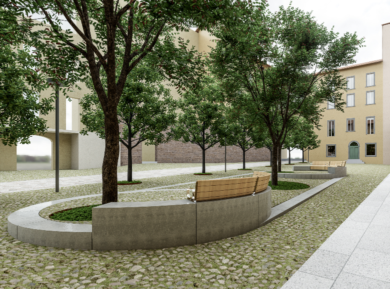 Il progetto prevede anche l’installazione di lampioni lungo il camminamento per migliorare l’illuminazione pubblica. Nelle isole entrerà lo stesso ciottolato esterno per dare uniformità alla piazza, con fasce in pietra che riprendono quelle del lavatoio e panchine della stessa forma del centro piacentiniano.