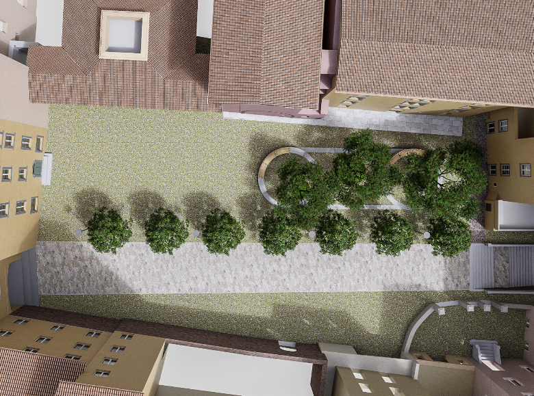 Il progetto originario prevedeva un intervento leggero, senza toccare la pavimentazione, con alberi in vaso e “isole” appoggiate sulla superficie esistente. Ma il pessimo stato del ciottolato, con avvallamenti e dissesti significativi creati negli anni dall’uso a parcheggio, ha imposto un cambio di rotta.