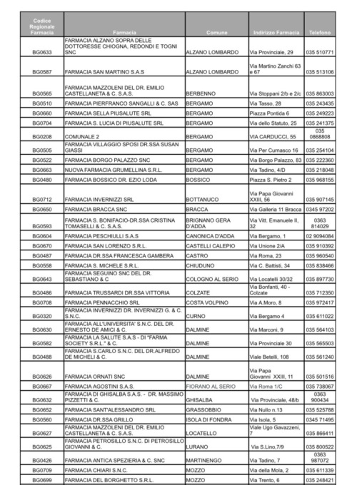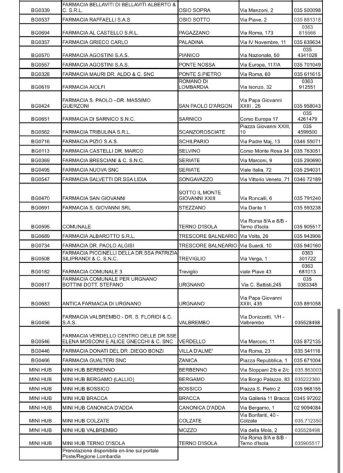 I centri vaccinali attivi in provincia di Bergamo sono: