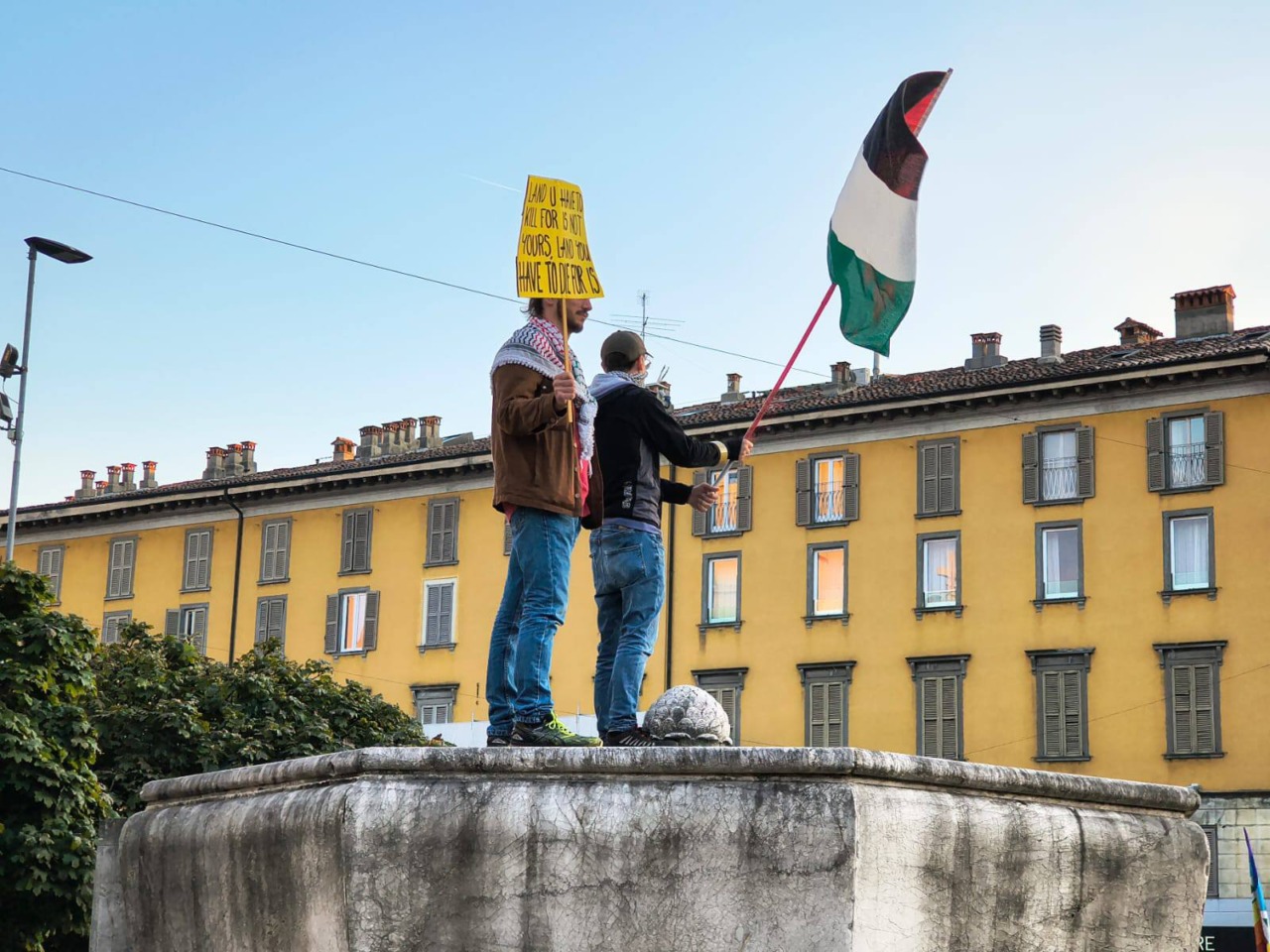 Le bandiere di Palestina, Ucraina e pace fuori dal Comune