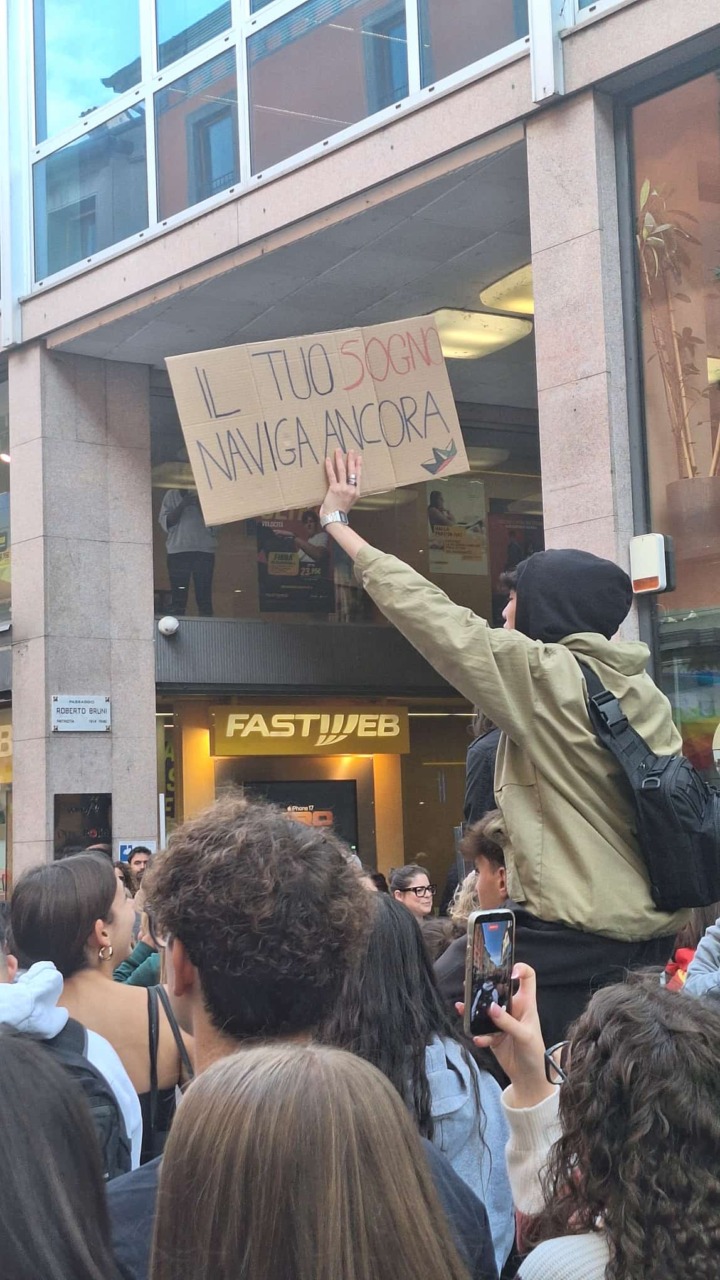 Come detto, in strada non sono scesi solamente i sindacati e i movimenti politici, ma anche migliaia di cittadini e tantissimi studenti e studentesse. Proprio questi ultimi sono tra i più “colorati”, con bandiere e striscioni di ogni tipo.