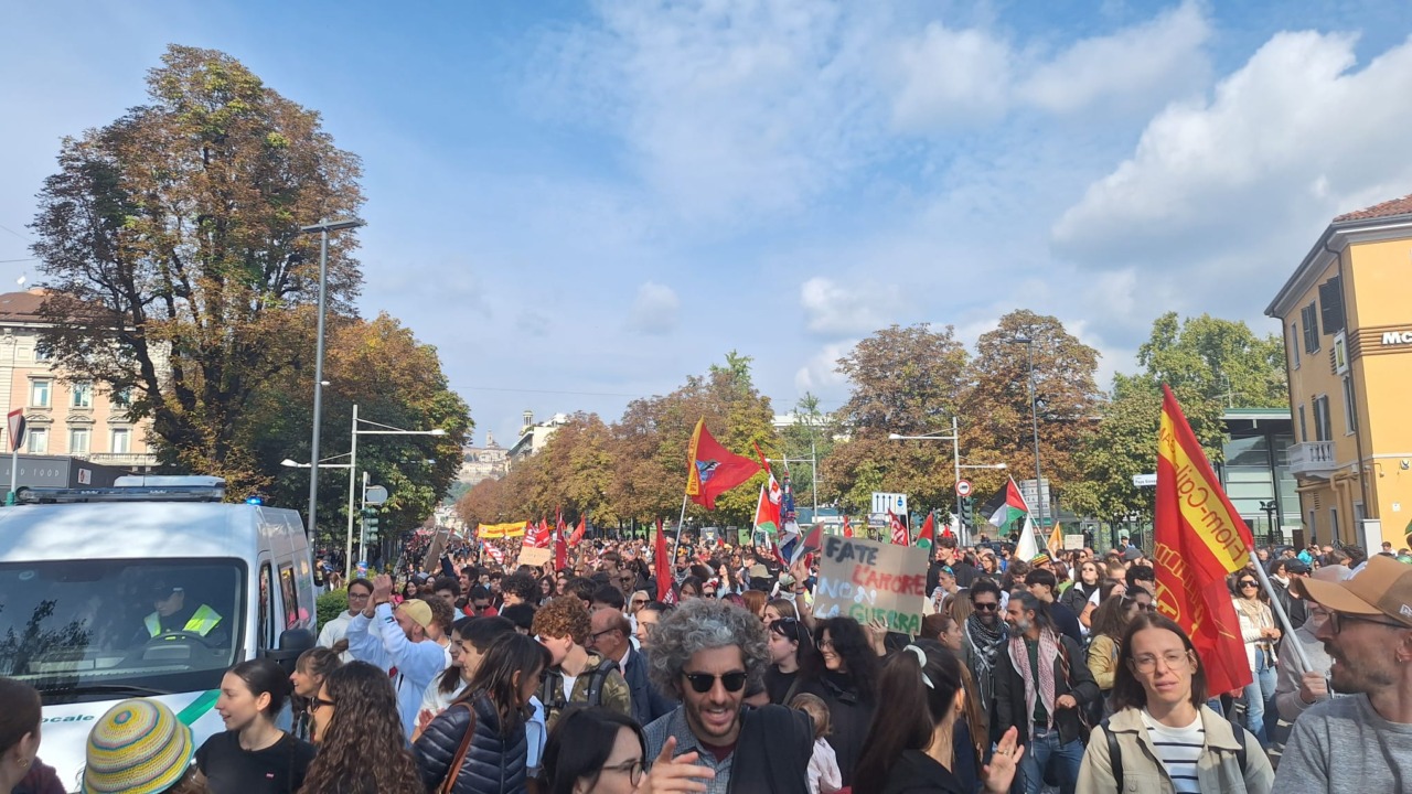 Le diecimila (secondo quanto riferito dai sindacati) persone scese in strada a Bergamo per dimostrare il proprio supporto al popolo palestinese e alla Flotilla si sono ritrovati in piazza Matteorri, inizialmente.