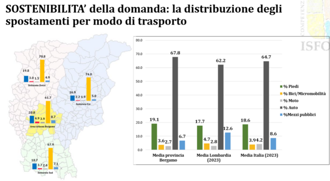 La ricerca, basata su un’indagine campionaria, ha coinvolto 1.877 cittadini della provincia di Bergamo, di età compresa tra 14 e 84 anni. Va precisato che l’analisi si è concentrata esclusivamente sulla mobilità feriale, dal lunedì al venerdì, e ha riguardato i soli residenti, escludendo le forme di mobilità che di fatto persistono sulla rete provinciale, come quelle legate al turismo. I risultati, raccolti tra marzo e aprile di quest’anno, sono poi stati confrontati con le medie della Lombardia e dell’Italia, fornite da Isfort per il 2023.