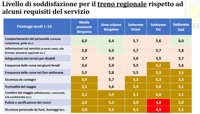 Nonostante ciò, il mezzo di trasporto più utilizzato, per frequenza, per fasce d’età e per genere, rimane l’automobile. Il rapporto tra mezzi pubblici e auto mostra un divario enorme. Questo dato, oltre a essere giustificato dalla struttura del tessuto urbano, che facilita e favorisce gli spostamenti in auto, è influenzato dal grado di soddisfazione e dalle prospettive future degli utenti. Il livello di soddisfazione per i mezzi pubblici, in particolare treni regionali, autobus e tranvia, è influenzato negativamente da fattori come la puntualità, la pulizia e la sicurezza personale.