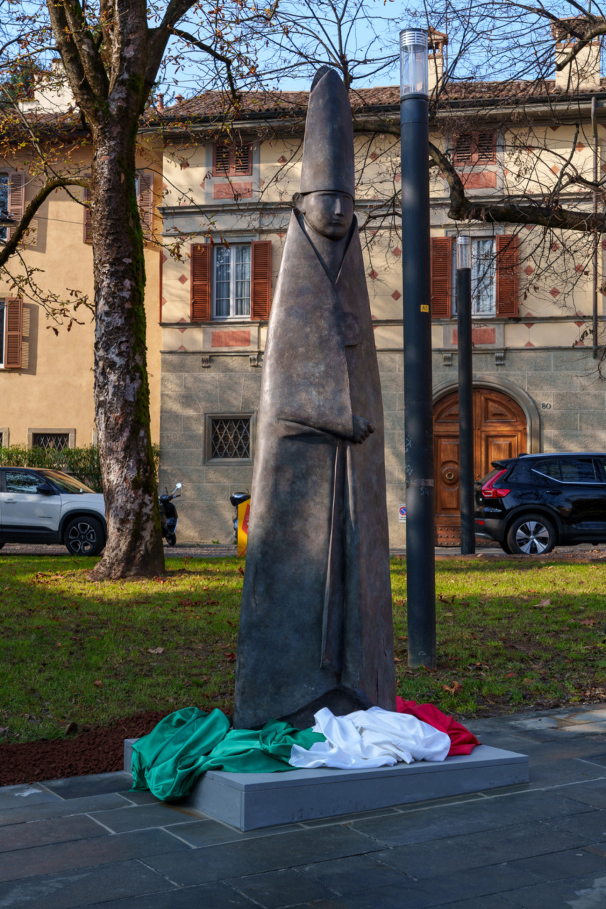 Il Grande cardinale in piedi, una delle opere più significative di Giacomo Manzù, è stato “svelato” oggi (sabato 8 novembre) in piazza Giacomo Carrara a Bergamo.