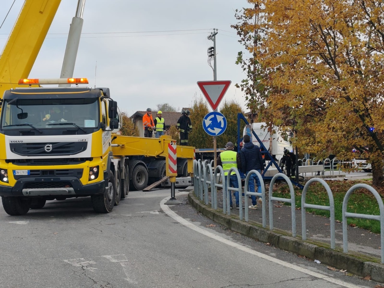 Ancora da chiarire l’esatta dinamica: come riportano i colleghi di PrimaTreviglio, l’autista avrebbe imboccato la rotonda e poi perso il controllo del mezzo pesante che, imbarcandosi, ha perso la lastra di cemento.