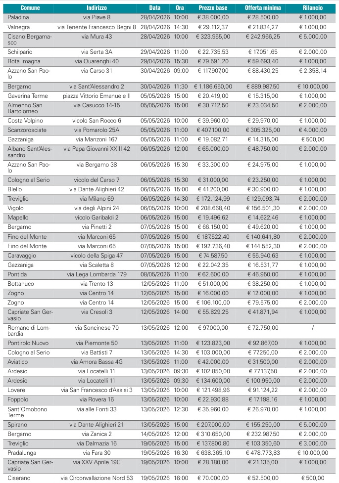 L’elenco completo delle case all’asta è sul PrimaBergamo in edicola fino a giovedì 30 aprile 2026, o in edizione digitale QUI