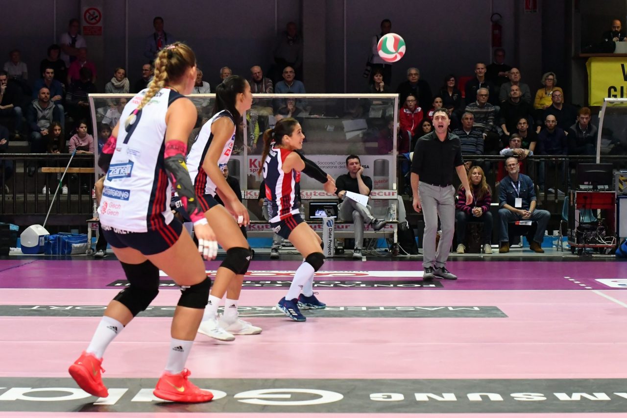 Zanetti in crescita. Dopo aver strappato il primo successo in casa di Brescia, la Zanetti Bergamo si ripete al PalaAgnelli contro Cuneo. La formazione allenata da Matteo Bertini mostra importanti segnali di crescita, soprattutto con Malwina Smarzek. L’opposta polacca, subentrata nei primi due set e sempre in campo dal terzo in poi, sta finalmente iniziando a mostrare il proprio valore, come testimoniano i 13 punti (46% in attacco) messi a referto in poco più di mezza partita. Per il resto Bertini dovrà lavorare sulla continuità di prestazione della propria squadra, perché anche domenica ci sono stati piccoli momenti di calo. Dopo aver disputato un ottimo primo set (cui hanno contribuito anche i dieci errori avversari), la Zanetti – schierata con Cambi in palleggio, Mingardi opposta, Tapp e Olivotto al centro, Courtney e Acosta in posto quattro e la rientrante Sirressi libero – cala leggermente e Cuneo – in campo con la diagonale Kaczmak-Van Hecke, Menghi e Zambelli al centro, Markovic e Cruz ai lati e Ruzzini libero – ne approfitta per strappare il provvisorio pareggio. Ma dal terzo set la musica cambia nuovamente e il vento soffia ancora a favore della Zanetti, che sfrutta anche un’altra grande serata di Olivotto (18 punti, 6 muri e 78% in attacco) e fa suo il match.