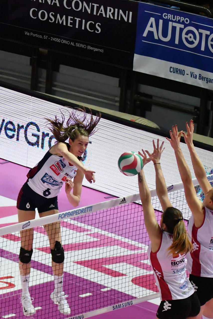Doppia affermazione bergamasca, con l’Olimpia che centra l’ottava affermazione consecutiva e continua la marcia solitaria in vetta alla classifica del Girone Blu di Serie A2 e la Zanetti Bergamo che supera Cuneo in quattro set e compie un altro piccolo balzo in avanti salendo al nono posto.