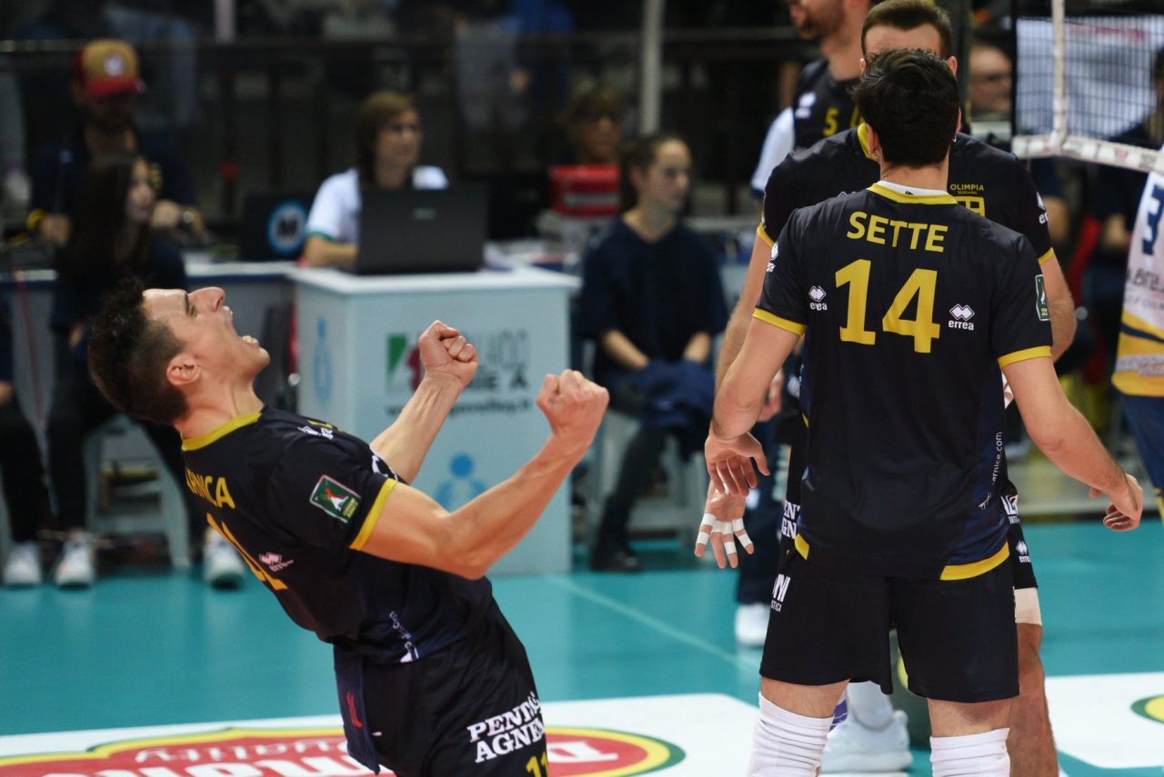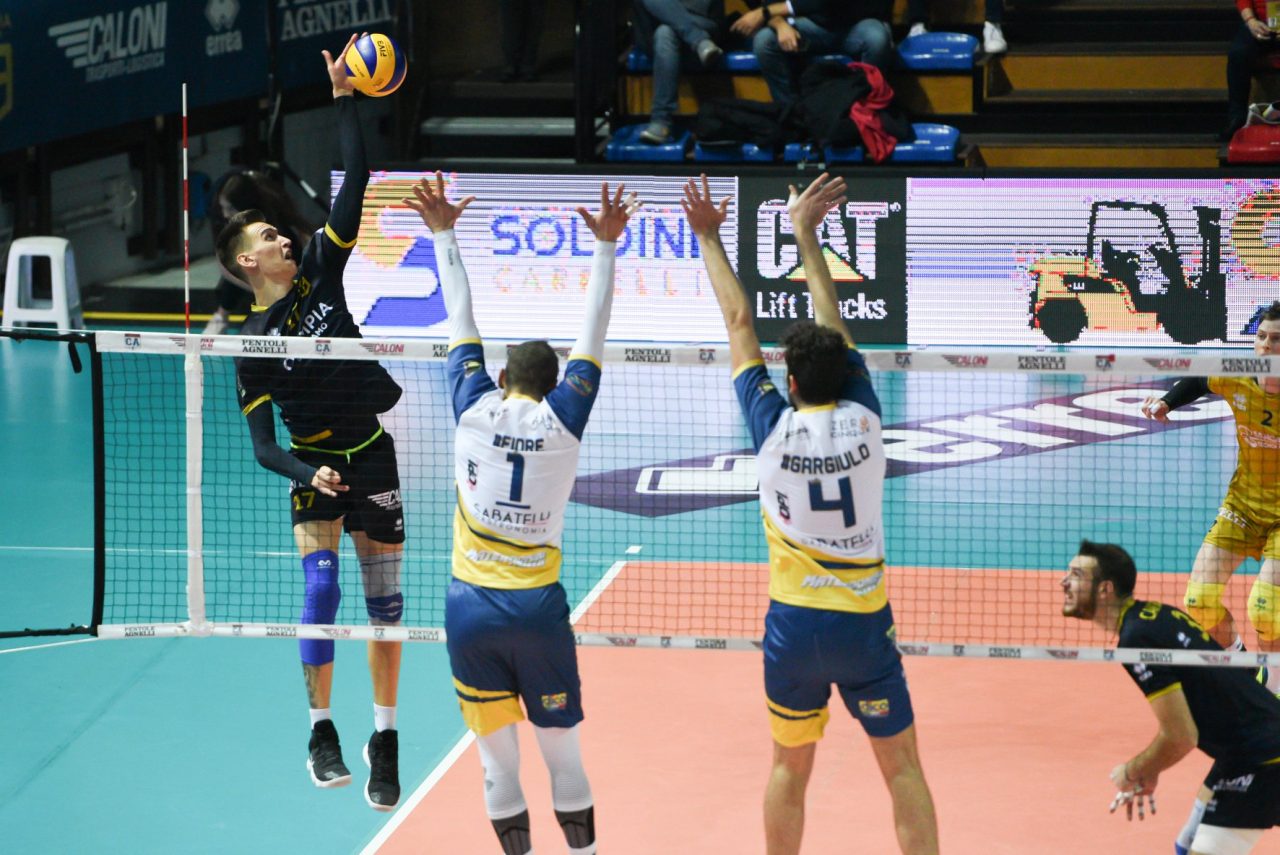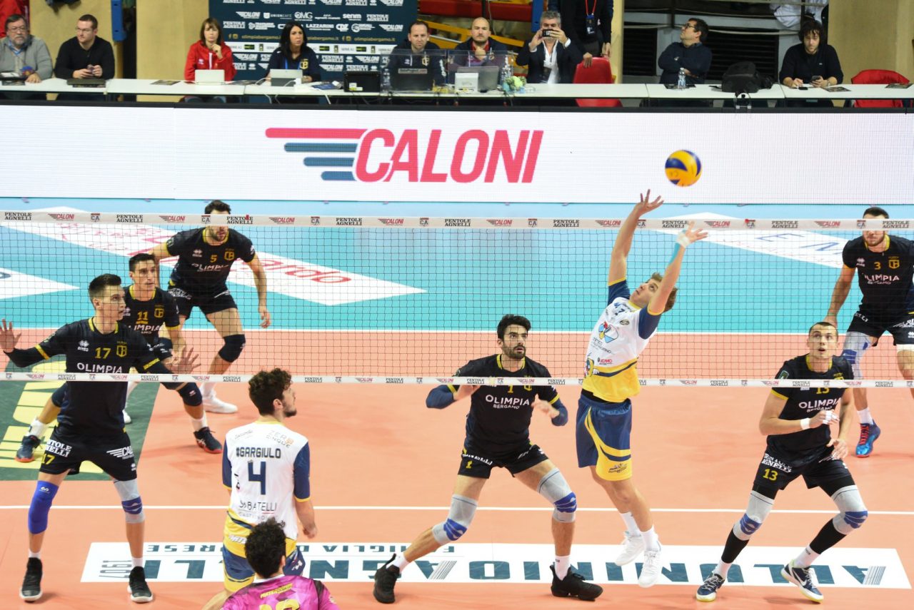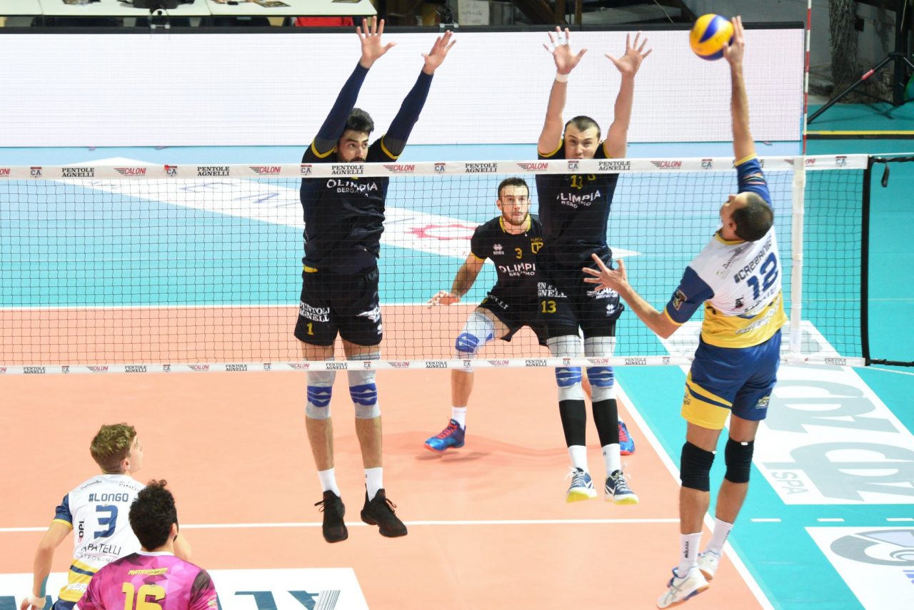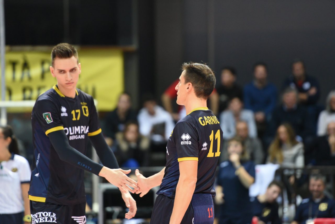Prova di forza dell’Olimpia. Alla formazione allenata da Alessandro Spanakis basta poco più di un’ora per sbrigare la pratica Castellana Grotte, terza della classe prima dell’anticipo del sabato. L’Olimpia – in campo con Garnica in cabina di regia, Romanò opposto, Cargioli ed Erati al centro, Tiozzo e Shavrak in posto quattro e Innocenti libero – si mostra decisamente più forte, facendosi valere soprattutto sul fronte offensivo grazie a un’eccellente prestazione corale di tutti gli attaccanti – ben diretti dalla sapiente regia di Garnica -, che concludono la prova con uno straordinario 66% (con il 70% e 74% nel secondo e terzo set). Castellana Grotte – in campo con l’ex Longo in palleggio, Cazzaniga opposto, Gargiulo e Patriarca centrali, Mazzon e Fiore schiacciatori e Battista libero – prova a rendere la vita difficile ai bergamaschi, ma pur sbagliando poco (16 errori complessivi) esce sconfitta 3-0: troppo forte l’Olimpia, che è stata maggiormente caparbia e lucida nell’interpretazione dei momenti decisivi di un match a tratti molto equilibrato.