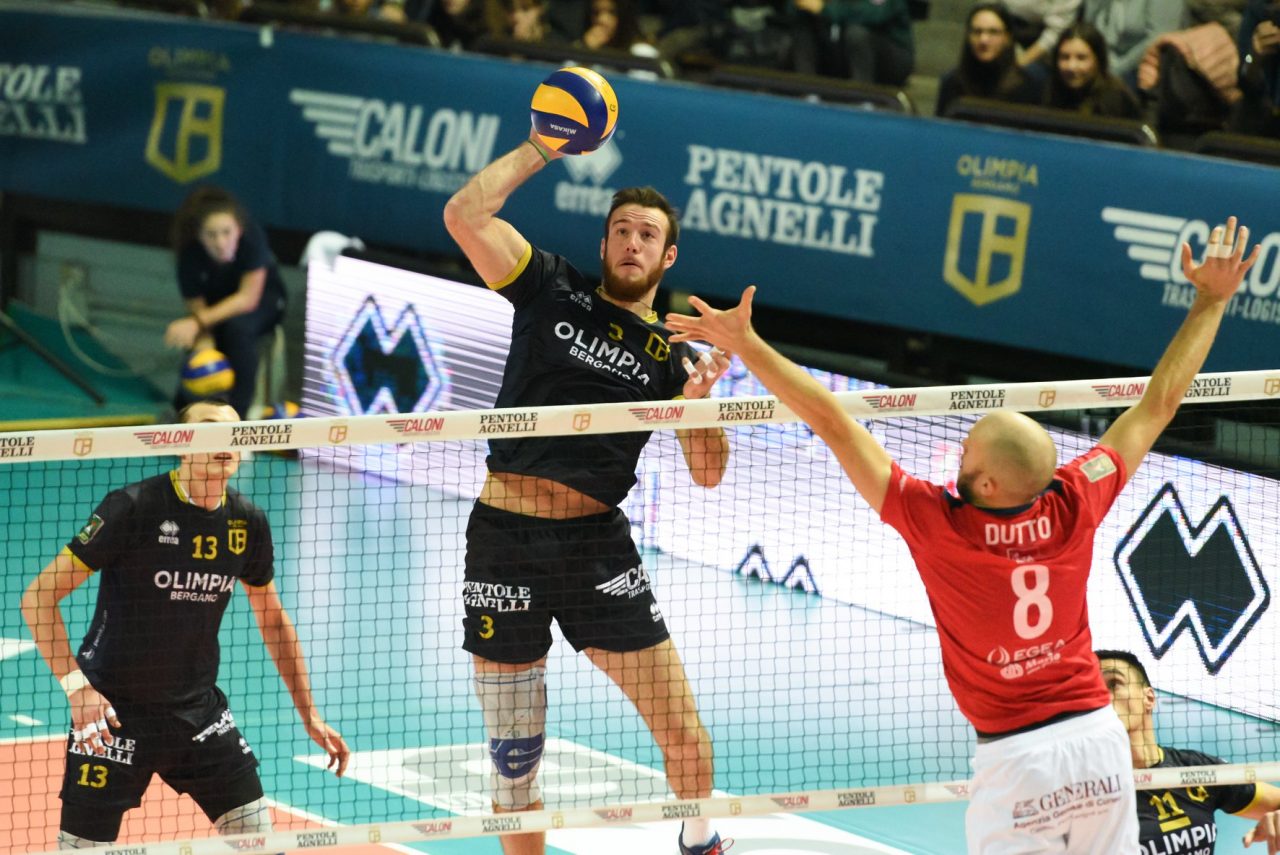 Imprendibile Olimpia. La formazione allenata da Alessandro Spanakis si conferma inarrestabile e supera in tre set anche l’ostacolo Bam Acqua San Bernardo Cuneo, che, nonostante una classifica deficitaria, non arriva a Bergamo nelle vesti di vittima sacrificale. Gioca la propria partita andando in campo con il piglio giusto e tenendo testa alla capolista per buona parte dell’incontro, salvo poi cedere nei momenti decisivi. Ad esempio, nel primo set i piemontesi – in campo con la diagonale Cortellazzi-Caio, Alborghetti e Dutto al centro, Bolla e Galaverna in banda e Prandi libero – restano vivi fino al 18-19, poi Shavrak firma il sorpasso (21-19) e l’Olimpia – schierata con Garnica in palleggio, Romanò opposto, Tiozzo e Shavrak ai lati, Erati e Cargioli centrali e Innocenti libero – arriva al 25-21 grazie anche a un paio di errori ospiti. Anche nella seconda frazione di gioco la lotta è serratissima, con Garnica che varia il gioco più possibile, ma Cuneo guida 13-15. Break bergamasco che vale il vantaggio (18-16), con l’Olimpia abile a tenere a distanza gli avversari di giornata e a firmare il raddoppio (25-23). Nel terzo periodo è ancora Cuneo a guidare le operazioni e questa volta sembrerebbe in grado di prolungare il match (12-16), ma l’Olimpia trova le forze per accorciare e annullare il gap sul 21-21 grazie anche agli innesti dalla panchina. Si va ai vantaggi che premiamo Bergamo grazie all’ultima palla messa a terra da Tiozzo per il definitivo 31-29.